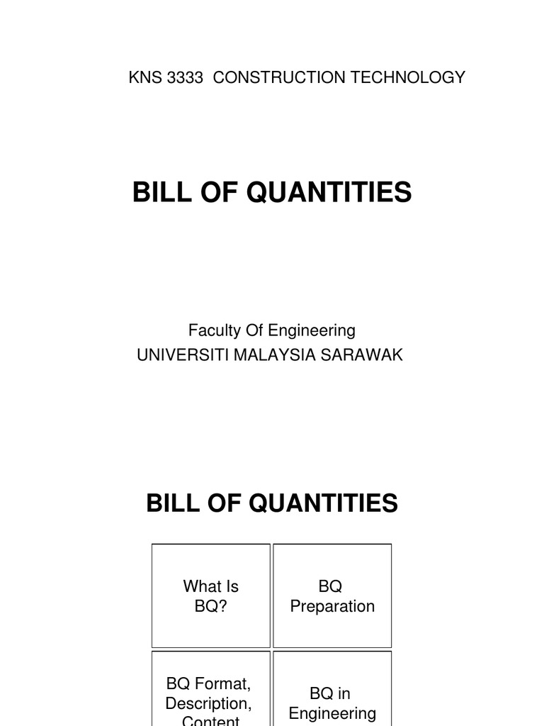 A Bill Of Quantities Bq Is A Document Used In Tendering In The Construction Industry In Which Materials Parts And Labor Are Itemized Bq Is Prepared By Immaculate Maintenance And Construction